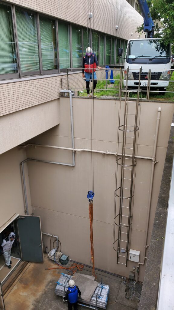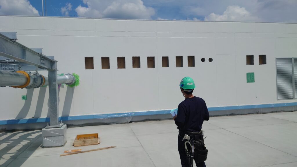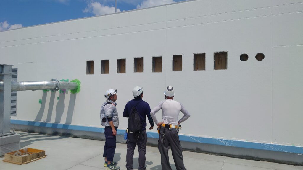 元請社員さんと足場を使いダクト屋さんも交え打合せ